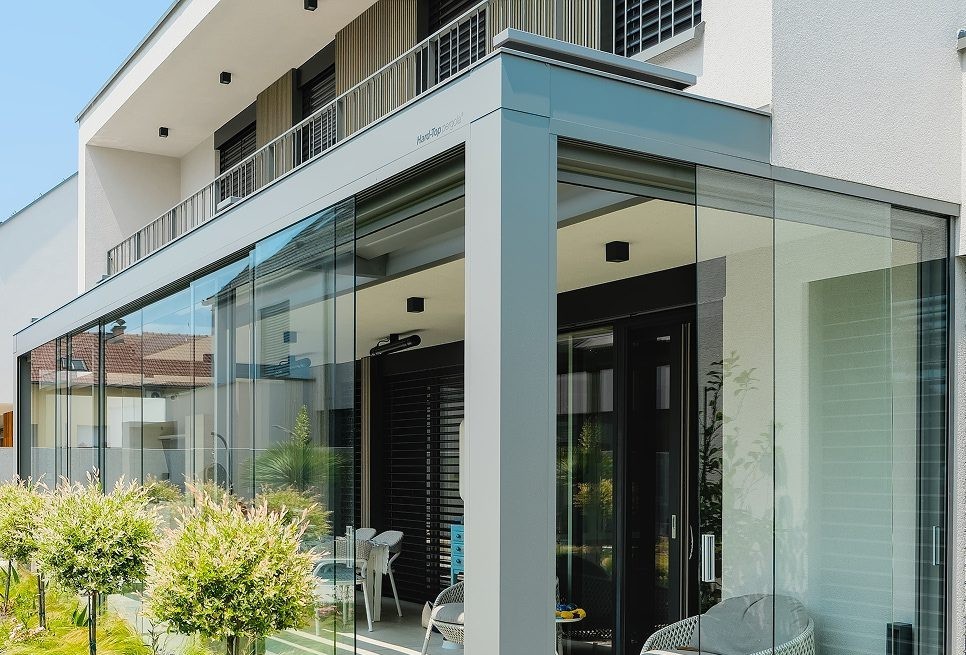 - Fiksne ali drsne steklene stene ustvarijo dodatno zaščito pred vremenom in nezaželenimi pogledi, pri čemer ohranijo svetlobo.