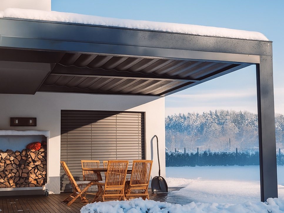 Številni lastniki hiš v zimskih mesecih nekoliko pozabijo na svoje vrtove in se raje umaknejo v zavetje toplega doma. A zimska terasa pod bioklimatsko pergolo nudi realno možnost, da del dneva preživimo na svežem zraku, tudi ko temperature padejo pod ničlo. Prostor pod pergolo namreč postane podaljšek dnevne sobe – zaščiten pred snegom in dežjem, a še vedno odprt navzven.